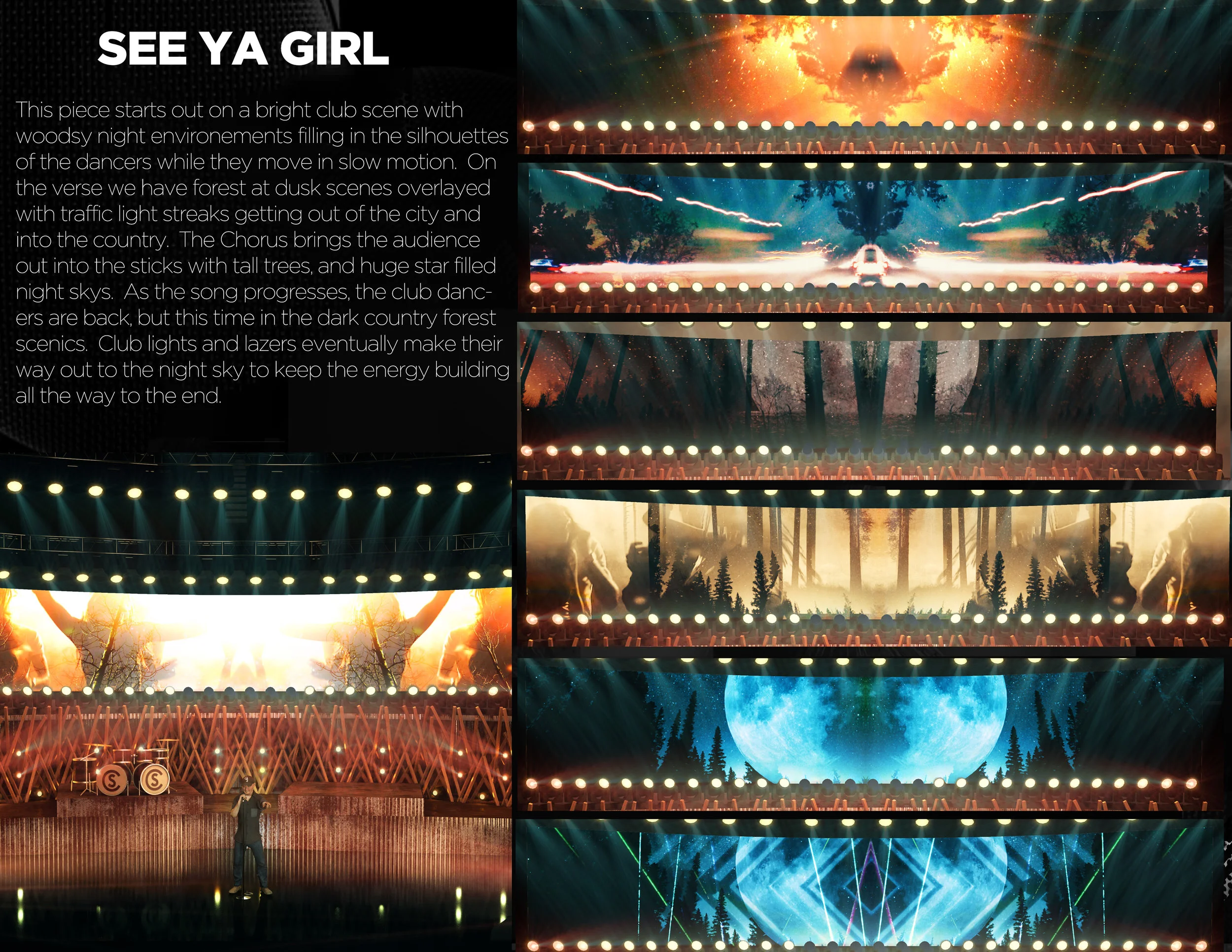Check out these treatments for Cole Swindell's 2017 Tour. All treatments are stills from the actual project file I use to create the content, so what you see is exactly what the finished product will look like.